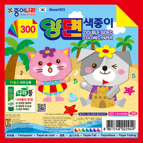 Paper folding, Scrapbooking, Paper quilling, Paper mache, Interior deco, Colore reference, etc. Weight: 25~240 g/m2 Variety: Single-sided color, Double-sided color, Hanji (Korean traditional paper), Patterned, Laminated, Embossed, Corrugated, Construction Waterproof, Sticky paper, etc. Certification: KC,CE, ACMI, ST